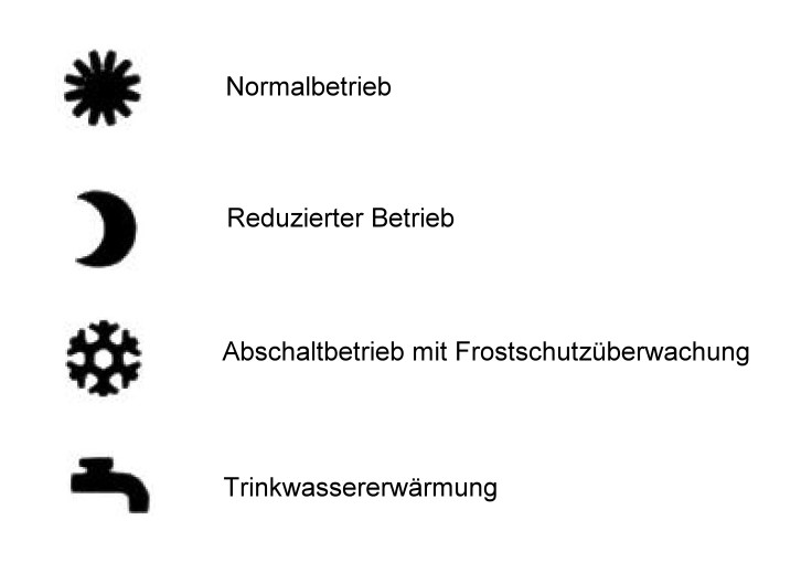 üblicherweise für die Nachtstunden gewählt oder bei langer Abwesenheit um das Auskühlen zu verhindern. Das Symbol ist