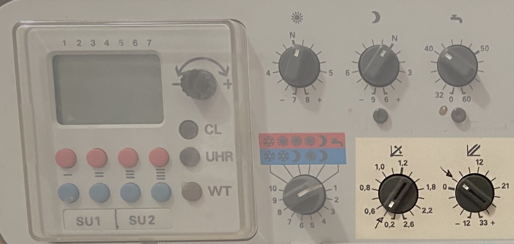 Den Offset verdreht man sobald die Steigung korrekt ist. Damit verschiebt man die Heizkurve damit sie zu den