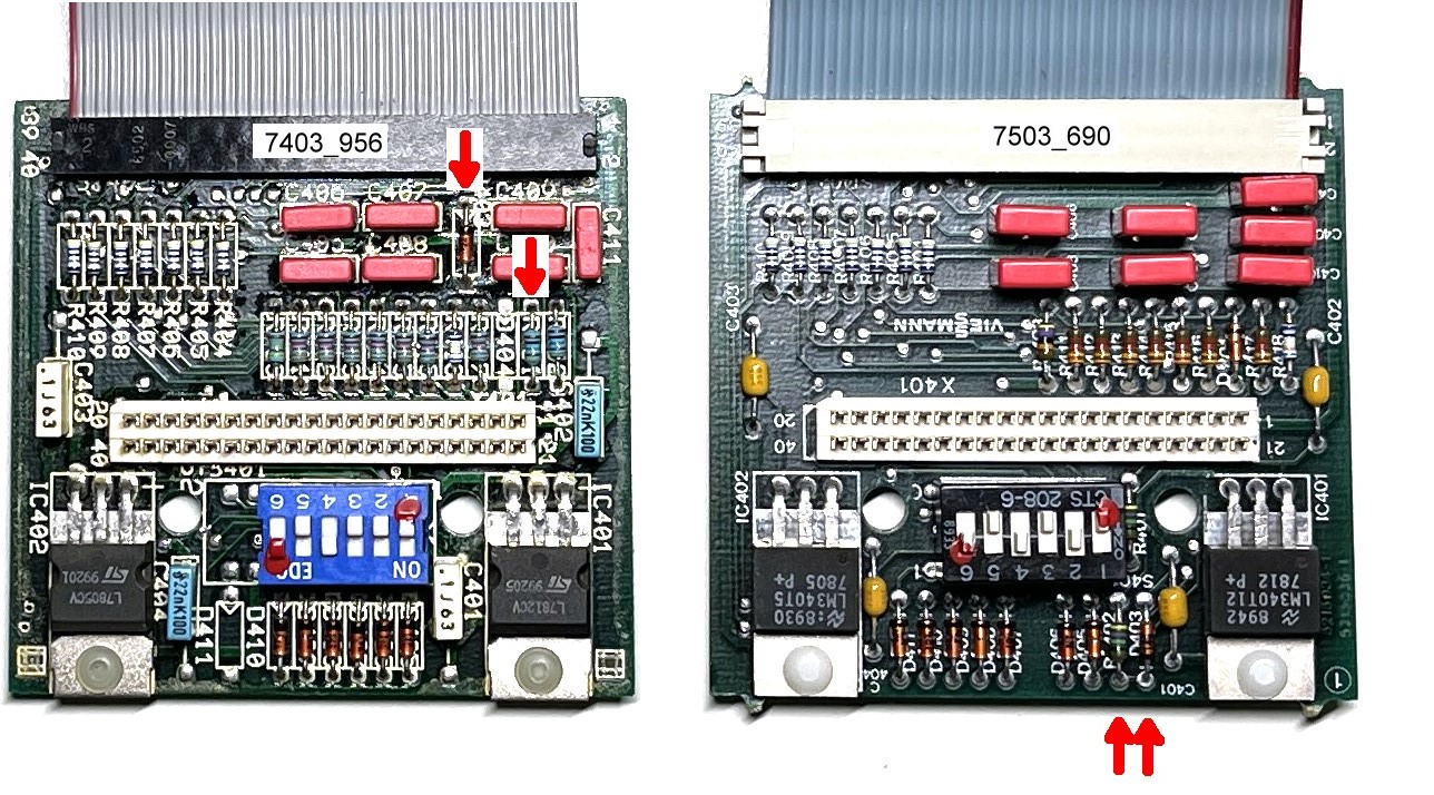 Die Lage der beiden Bauteile auf der Platine hängt von der Teilenummer der Regelbox ab.