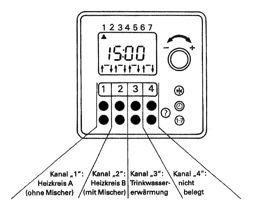 Die Zuordnung der Schaltkanäle hängt davon ab ein "Heizkreis B mit Mischer" vorhanden ist oder nicht. Dies wird