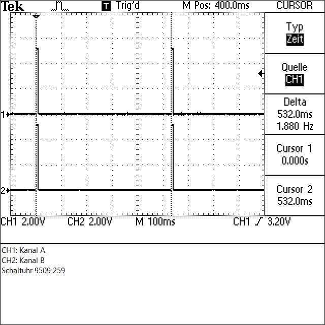 An den Ausgängen A und B liegen gepulste Signale an. Diese Pulse sind die Zeiten in denen der Prozessor die